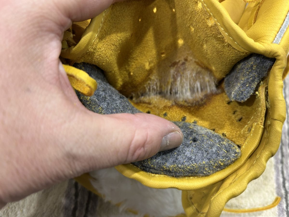 捕球面がやや柔らかくなったので、内部のグリス量を調べました。十分な量でしたので、充てんの必要はありませんでした。