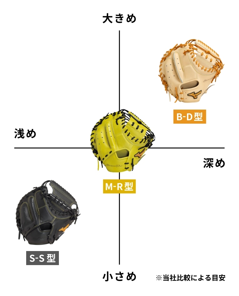 - 特徴: 指袋を短く設定し、フィット感とカウンターバランスを実現しています。また、背面指袋の形状と角度を微調整し、手にフィットしやすくミット自体の操作性を向上させています。