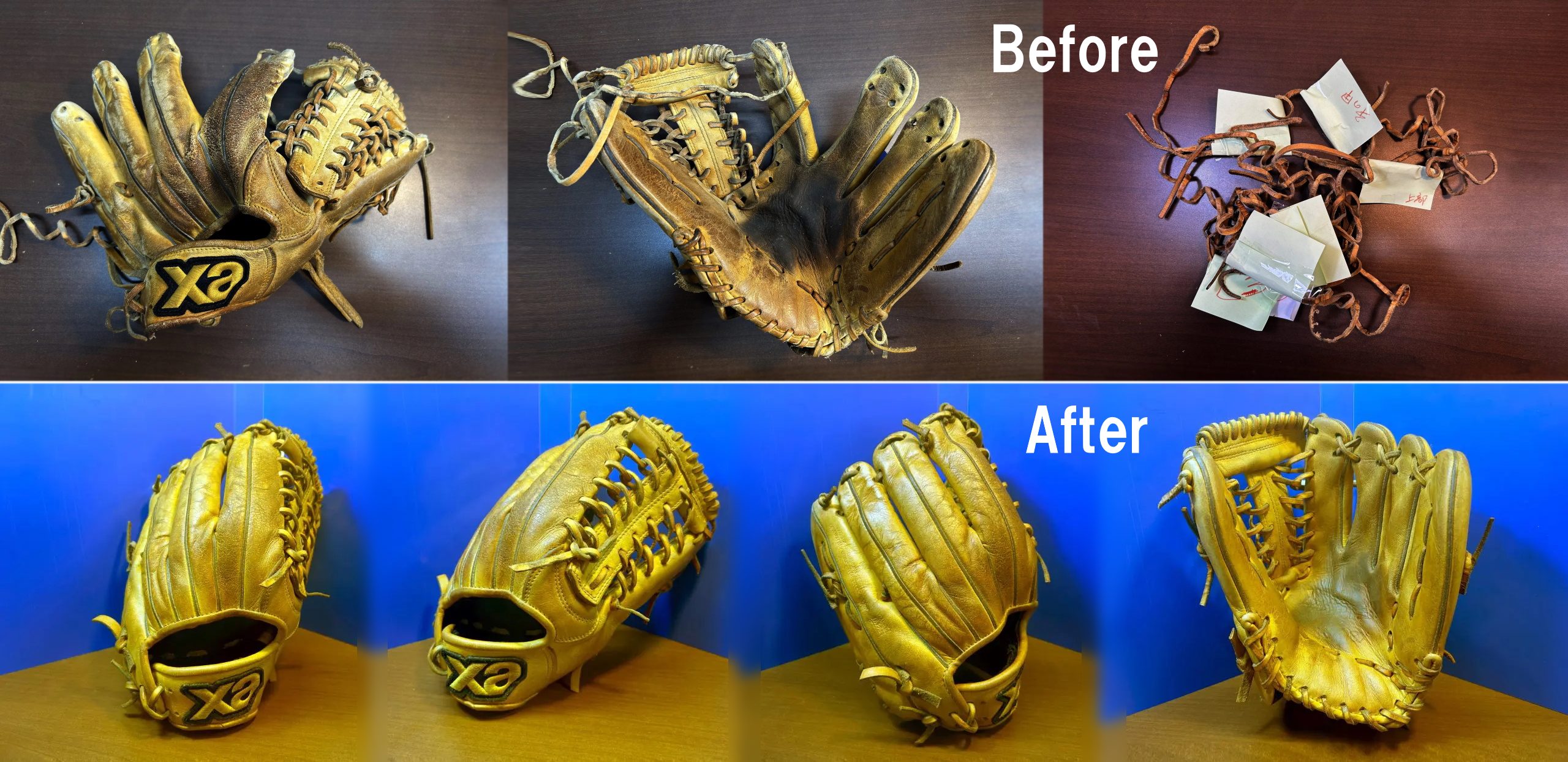 グローブは、使い込むほどに手に馴染む一生のパートナーです。 「捕球面に浮きが出てきた」「紐が緩んで操作性が落ちた」「自分に合った型に直したい」など、どんな小さなお悩みでもお気軽にご相談ください。